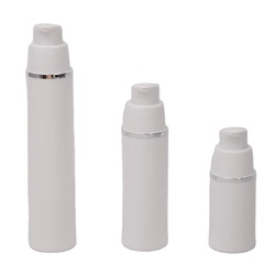 Witte 15Ml 30Ml 50Ml Frosted Luchtloze Pompfles Met Zilveren Ring Voor Blozen Losse Poeder Huidverzorging Serumtoepassing